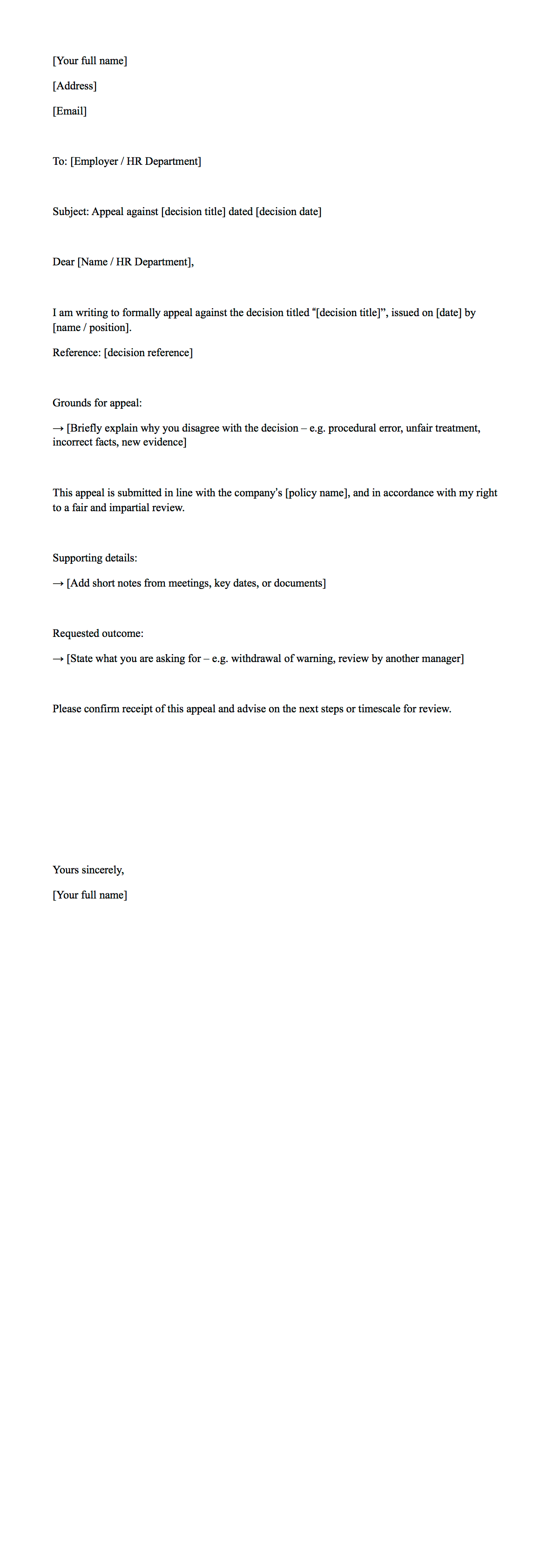 Przykład gotowego pisma: Odwołanie HR (appeal) (UK) – letter sample (blur)