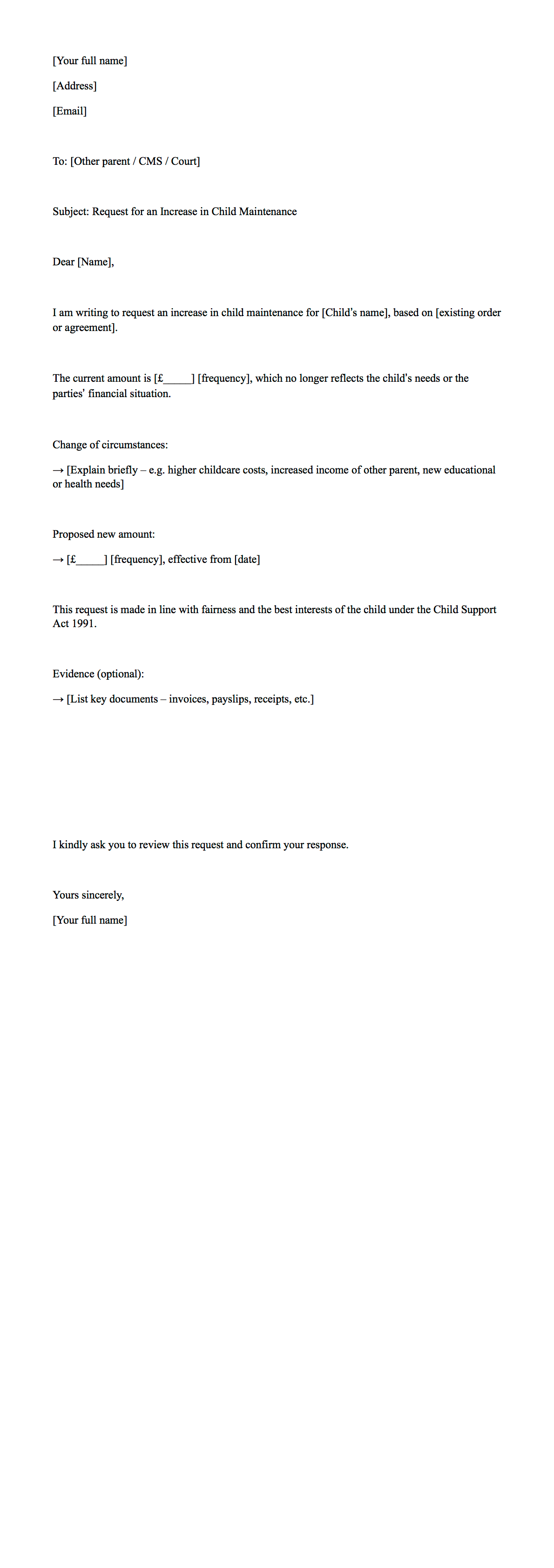 Przykład gotowego pisma: Podwyższenie alimentów (UK) – letter sample (blur)