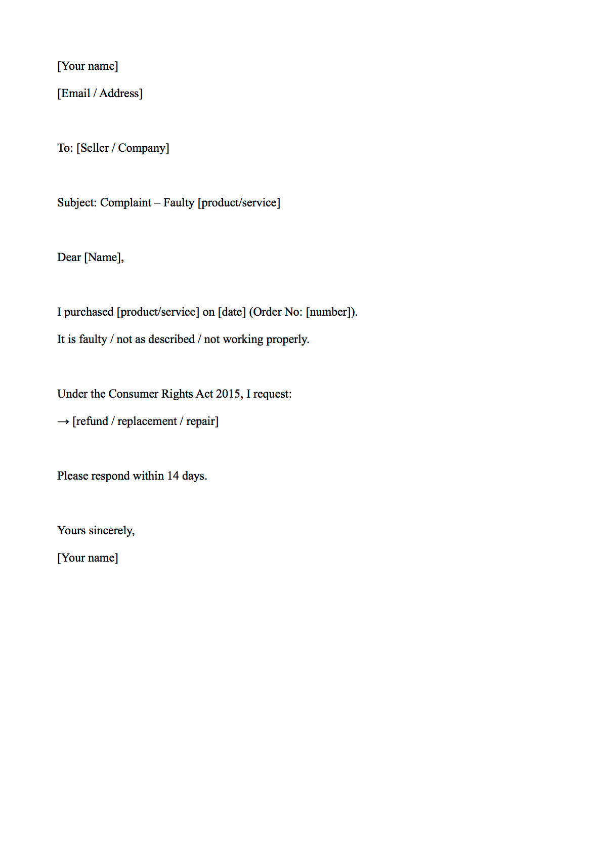 Darmowy formularz: Reklamacja konsumencka (UK) – Word form