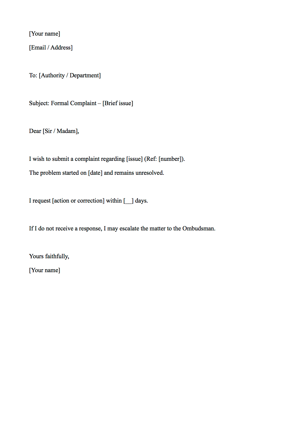 Darmowy formularz: Skarga do instytucji (Council/HMRC) (UK) – Word form