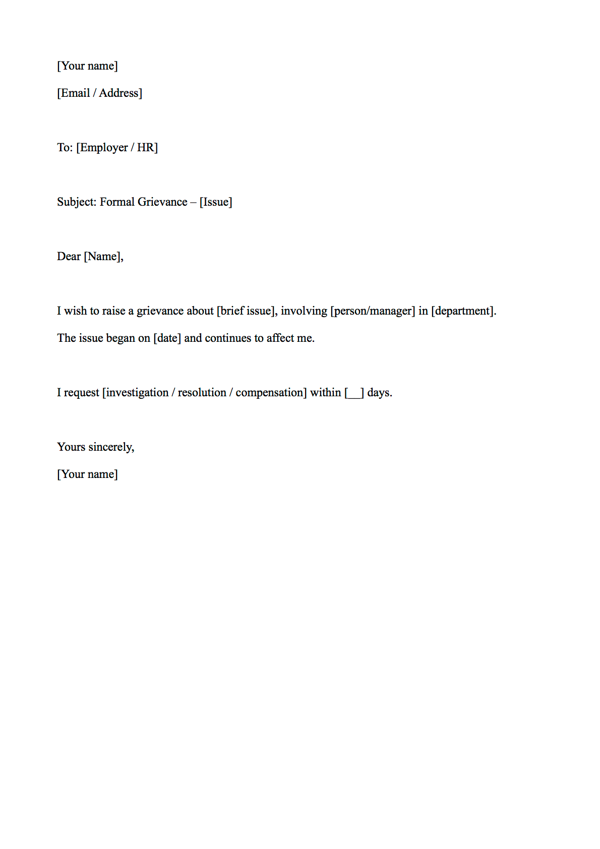 Przykład gotowego pisma: Grievance (skarga pracownicza) (UK) – letter sample (blur)